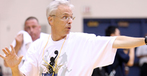 Coach Summitt shows a drill using the Gun that creates game-like shooting as well as working on closeouts. Leave it to Coach Summitt to come up with a defensive component in a shooting drill with the Gun.